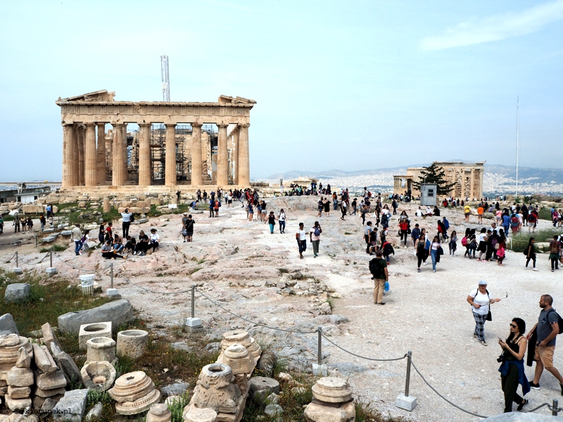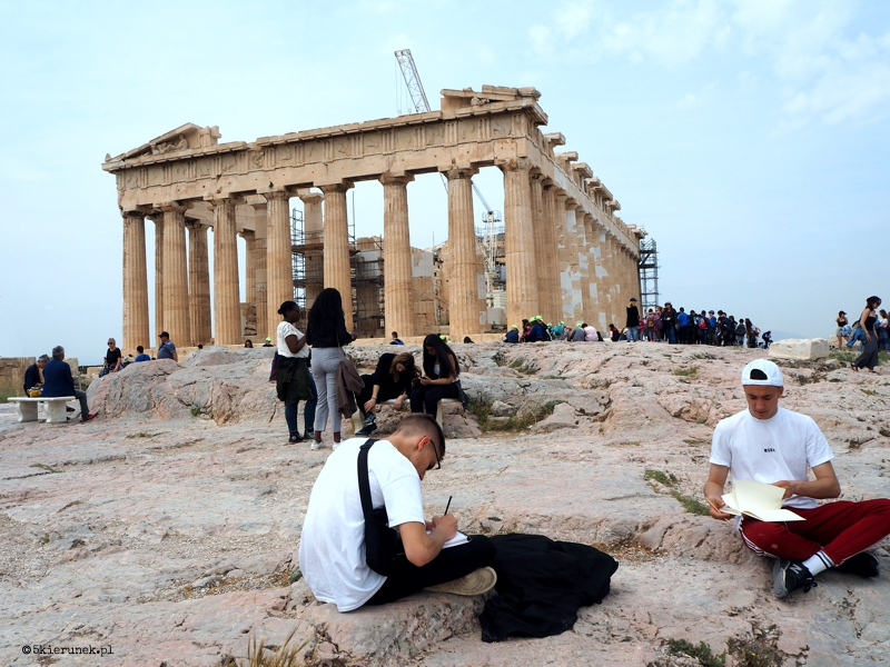 Akropol ateński. Tłum miota się po wzgórzu. Zdjęcia, pozowane selfie, pstryk i szybki marsz do kolejnej atrakcji. Płynę trochę obok. Próbuję wśród kolumn odnaleźć ducha demokracji. Z pamięci wypływają wyuczone w szkolnych czasach opisy: Perykles – reformator, Fidiasz – genialny rzeźbiarz, Iktinos, Mnesikles i Kallikrates – architekci, których dzieła akropolu ateńskiego podziwia świat. Podziwiam i ja. Wiem, że nie zdążę zobaczyć wszystkiego. Wolę na chwilę być samotnym w tłumie i zgubić się w marmurach odbitych od lustra niebieskich okularów. Chyba nawet przez chwilę widziałem w nich Atenę…