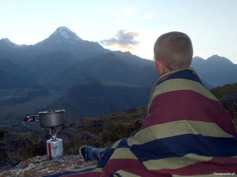 Jednak niezależnie od nazwy, ten potężny pięciotysięcznik za każdym razem jest dla mnie jak latarnia na drodze Gruzja-Osetia Północna. Kiedy wychodzę z namiotu w Stepancmindzie czy w Dolinie Sno lubię patrzeć na majestatyczny „lodowy szczyt”. Przy jego wielkości i sile natury po raz wtóry uświadamiam sobie ludzką wątłość. Karmię się tą refleksją i wiem, że mam limitowany czas na poszukiwanie Piątego Kierunku. Uśmiecham się w głębi duszy, bo nie jestem w tym osamotniony, w przeciwieństwie do dumnie wypiętrzającego się Mkinwarcweri.