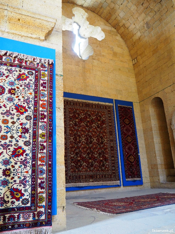 Obecnie mieści się tu Muzeum Sztuki, Sztuki i Rzemiosła. Nieliczne eksponaty jednak nie należą do ormiańskich mistrzów. W wnętrzu kościoła oglądam prace tabasarańskich tkaczy dywanów, kubaczyńskich jubilerów i lackich ceramików. Jedynie jedna wnęka nosi znamiona ormiańskości. Bije z niej blask palonych świec. Wpatruję się w nie, jak płoną. Czuję ich ciepło, choć na zewnątrz wciąż widoczne są ślady po bolszewickich kulach.