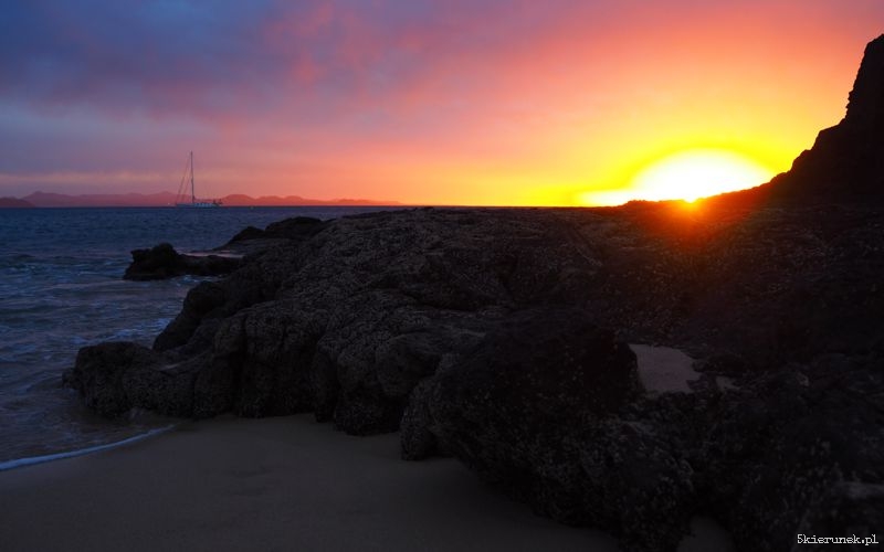Siedzę nad brzegiem oceanu. Beata wpatrzona w dal pije kawę, a Mikołaj gania się z wiatrem na plaży. Ostatnie dni przypływają i odpływają powoli, niczym mimowolne ziarna piasku noszone przez władcze fale. Lubię takie dni. Nigdzie nie trzeba się spieszyć. Dzień jest wyznaczany przez wschód i zachód słońca. A na wyspie wiecznej wiosny – Lanzarote słońca nie brakuje. Rankiem wysyła ono sygnały dla lokalnych rybaków, żeby nie zapomnieli o swoich sieciach. W dzień pieści dojrzewające winogrona rosnące na wulkanicznym żwirku La Geria. A wieczorem daje spektakularne popisy gorących kolorów na przecięciu sfery niebieskiej. Słońce na wyspie wiecznej wiosny wraz wiatrem i wodą, utwierdzają mnie w przekonaniu podobieństwa mojego życia do ziarenek piasku na plaży, na której jestem. Lubię to doznanie, a dzięki słońcu czuję się tutaj jak na wiosnę. Nie ważne, że w Polsce jest zima.
