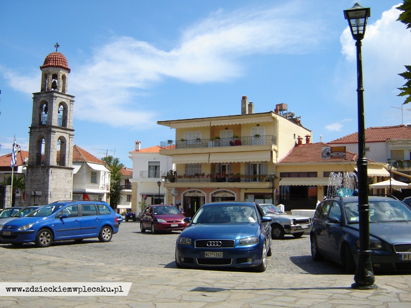Do Litochoro można dostać się autobusem z Salonik oraz Larisy. Pociągi (w tych samych kierunkach) nie jeżdżą za często, a stacja położona jest przy plaży Pieria, czyli ok. 5 km od centrum. Pośrodku miasteczka znajduje się plac z fontanną, dokoła którego zbudowane jest małe rondo. Wokół centralnego placyku mieszczą się restauracje i tawerny oraz liczne sklepy. Przy placu jest łady kościół Św. Mikołaja (Agios Nikolaos). Za kościołem można odpocząć w cieniu parku, gdzie znajdziecie letnią scenę teatralną i place zabaw. My, po zejściu z Olimpu, spędziliśmy tam noc w namiocie i nie było problemów.