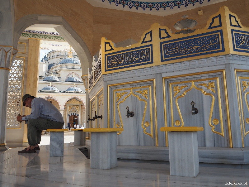 Meczet jest częścią kompleksu zajmującego obszar 14 hektarów. Na jego terenie znajdują się: Rosyjski Uniwersytet Islamski imienia Kunta-haji Kisziewa, siedziba ДУМ (Duchowej Administracji Muzułmanów Republiki Czeczenii), Biblioteka Islamska oraz ogród „Edenu”. Po drugiej stronie Prospektu Putina mieści się pomnik poświęcony poległym w walce z terroryzmem. Na południowy-wschód od kompleksu, na drugim brzegu rzeki Sunży, znajduje się migoczący nocą Grozny-City – kompleks wieżowców, wśród których znajduje się restauracja, gdzie oficjalnie można napić się alkoholu (za duże pieniądze). W takim otoczeniu znajduje się meczet, którego oficjalna nazwa brzmi „Serce Czeczenii”. Nazwa nadana nieco na wyrost, na pokaz. Dla mnie prawdziwe serce Czeczenii niezmiennie bije w górach, gdzie znajdują się rodowe kamienne wieże Wajnahów.